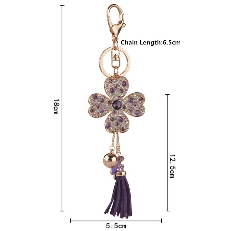 Lucky Four leaf Clover with Tassel Keychain Car Keyring Crystal Rhinestone Women Purse Pendant Handbag Charm