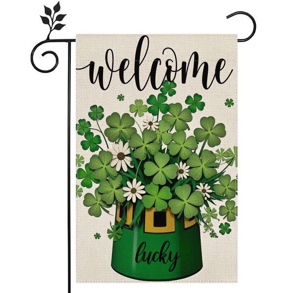 Lucky Hat St.Patricks Day Happy Clover Green Garden Flag 12x18 Double Sided Welcome Lawn Yard Holiday Outdoor Flag Decoration