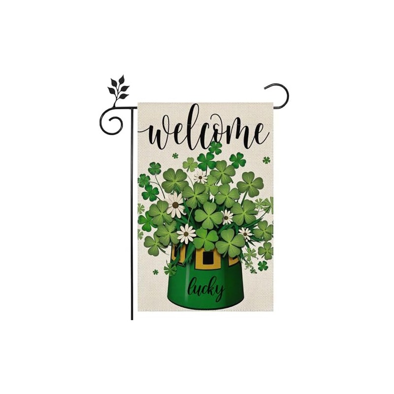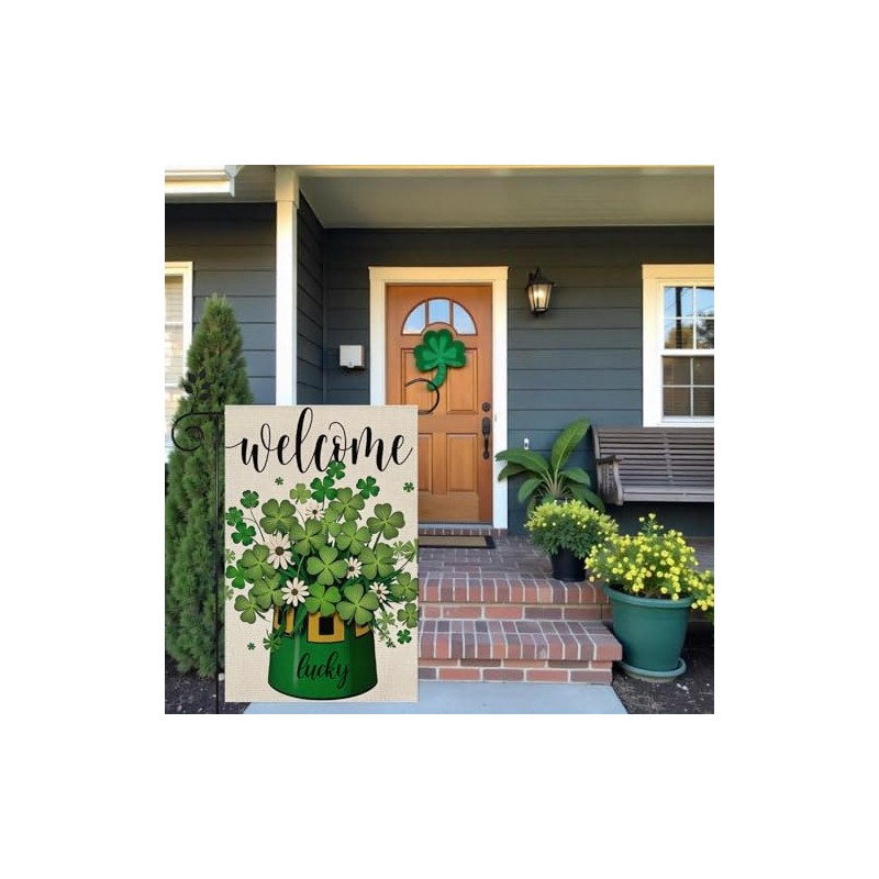 - St. Patrick's Day decoration: This St. Patrick's Garden flag pattern of green clovers, four-leaf clovers, hats, and gold coins is suitable for outdoor garden decoration at home, perfect for hanging on patios, lawns, gardens, courtyards, patios, porches, balconies, etc.
