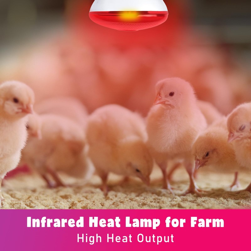 - Wide Use: Our infrared heat lamp is widely used, not only for chicks coop and poultry, but also for reptiles such as bearded dragons, lizards, snakes, and pets such as cats and dogs. In addition, this red heat lamp bulb provides heat preservation for food
