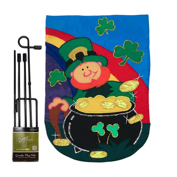 Lucky Irish Garden Flag Stand Kit Wall Hanging Decor for Home Stake Patio Post Embroidered St Patrick's Day Decorations Welcome Yard Sign Applique Tapestry Sewing Spring Handcraft Gifts for Grandma