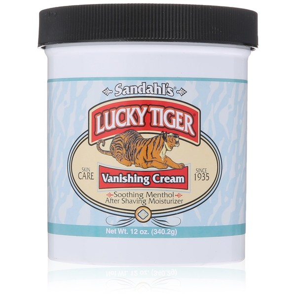 Lucky Tiger Sandahl’s Vanishing Cream, 12 oz | Classic Cooling After-Shave Moisturizer with Menthol & Peppermint Oil | Soothes Razor Burn, Refreshes Skin, Absorbs Fast