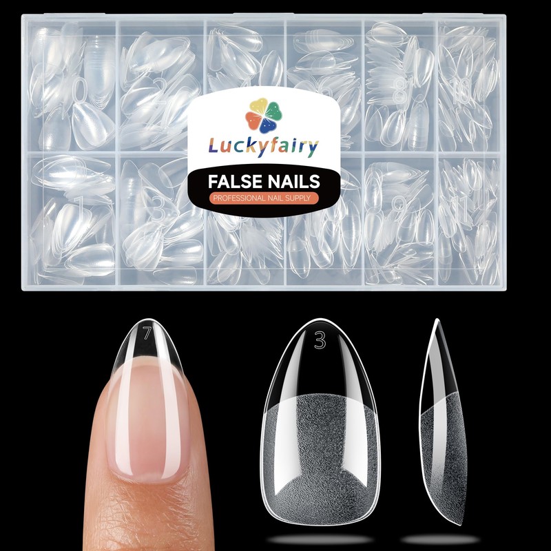- ❤️Easy to Use: Luckyfairy clear short almond tips front end is thick and hard to break, and the back end is thin and has a more shallow curve to give you a natural wearing feel without feeling uncomfortable "tightness". Also, Pre-shape tips do not need to be filed and save much time.