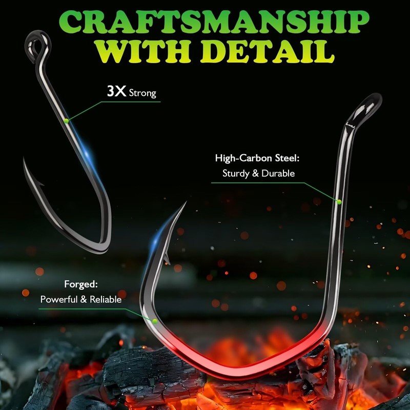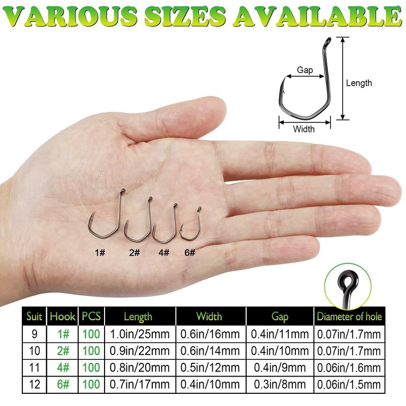 • Various Sizes-More Options for You: The catfish hook is available in multiple sizes: 1/0-100pcs, 2/0-100pcs, 3/0-100pcs, 4/0-80pcs, 5/0-70pcs, 6/0-60pcs, 7/0-50pcs, 8/0-50pcs. 8 sizes to suit multiple fishing conditions. Get the octopus hook and go fishing this weekend! You will hear the fish scream ouch! Attention: Fishing Hooks SIZE is showed at Fourth Picture in the Detail Page.