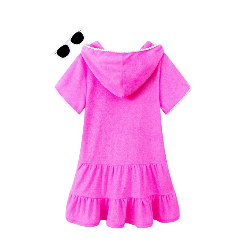 LUCKYGAL Big Girls Swim Coverup Kids Beach Cover up Terry Beach Pool with Sunglasses, Size 12 13 Rose Red