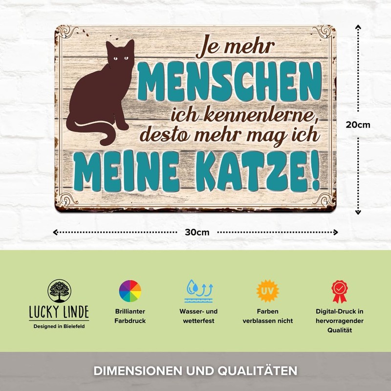 LUCKYLINDE Tin Sign Cats Sign Funny Saying Cat Decoration Weatherproof 30 x 20 cm (The More People I Know The More People I Know The More I Like My Cat)