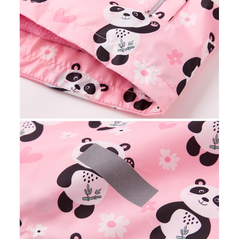 LUCKYLUAN Girls Rain Jacket Windproof Raincoat Hooded Fleece Lined Outerwear 6-7 Years Pink Panda