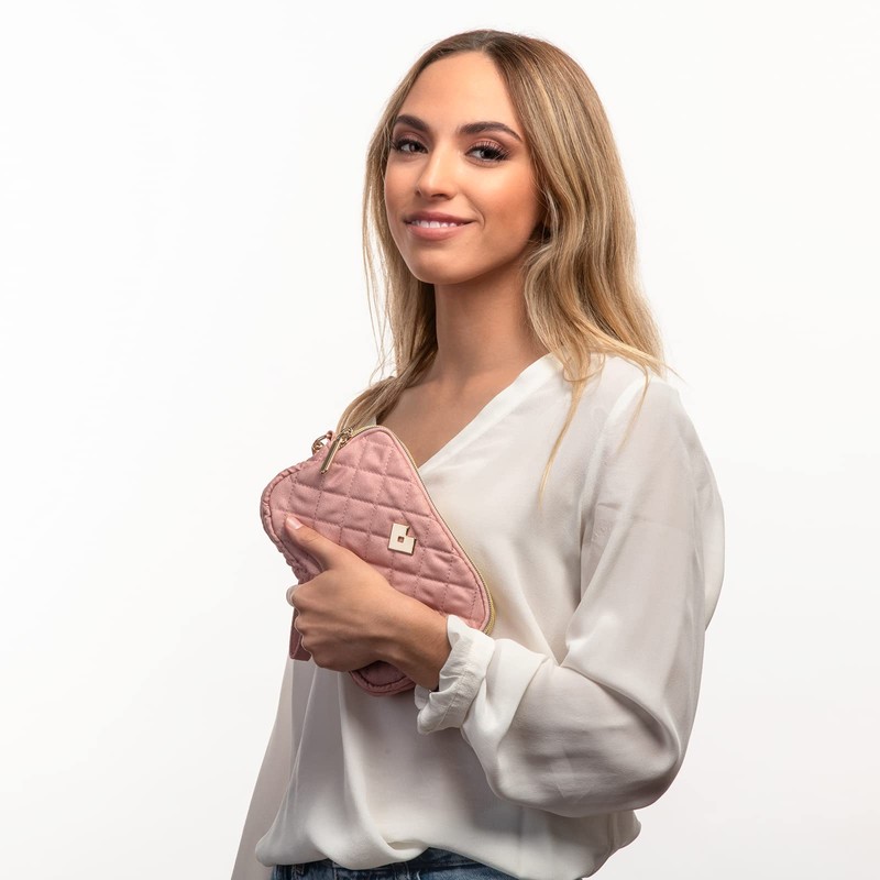 La bolsa de mano para mujer Gaby, tiene un diseño muy único y moderno; su forma y cinta removible que sirve como muñequera es ideal para llevar contigo diario contigo tus pertenencias. Tiene un tamaño ideal que te permite llevarla sola como clutch, o dentro de un bolso de mujer más grande cómo cartera o neceser organizador de maquillaje. Ocúpala para salir de día o de noche, ¡o simplemente para llevarla de paseo!