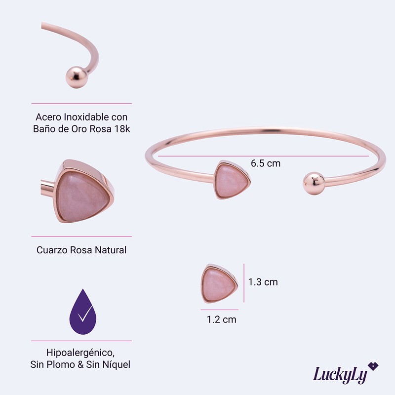 - MATERIALES DE EXCELENTE CALIDAD: Acero inoxidable con baño de oro rosa 18k y cuarzo rosa natural. Utilizamos los más altos estándares de calidad para todos los materiales ocupados en este brazalete mujer con cuarzo natural Aline y toda nuestra joyería para mujer. Hipoalergénico, Sin Plomo & Sin Níquel.