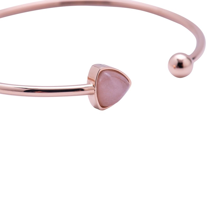 La pulsera para mujer de cuarzo rosa Aline es el accesorio ideal. Es uno de los brazaletes para mujer de acero inoxidable más increíbles, pues tiene baño de oro rosa 18k y un detalle de cuarzo rosa con mucha profundidad. Es una pulsera oro rosa 18k espectacular y de las pulseras mujer acero inoxidable más bonitas y resistentes. Definitivamente es de la joyería para mujer ideal y es de los regalos para mujer originales y de cumpleaños perfectos.