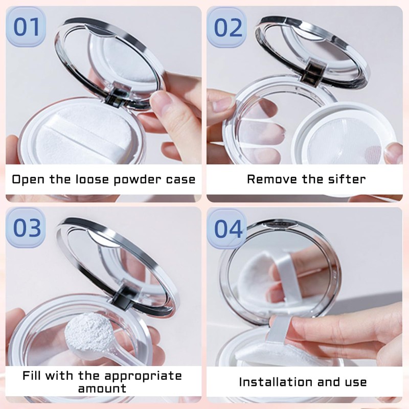 - Easy to Use: The elastic mesh sieve can make loose powder adhere to the puff more evenly, and gently press to return the excess powder. The setting powder container has a large opening for easy powder loading, and just opening the elastic mesh cover can add and store more powder effectively