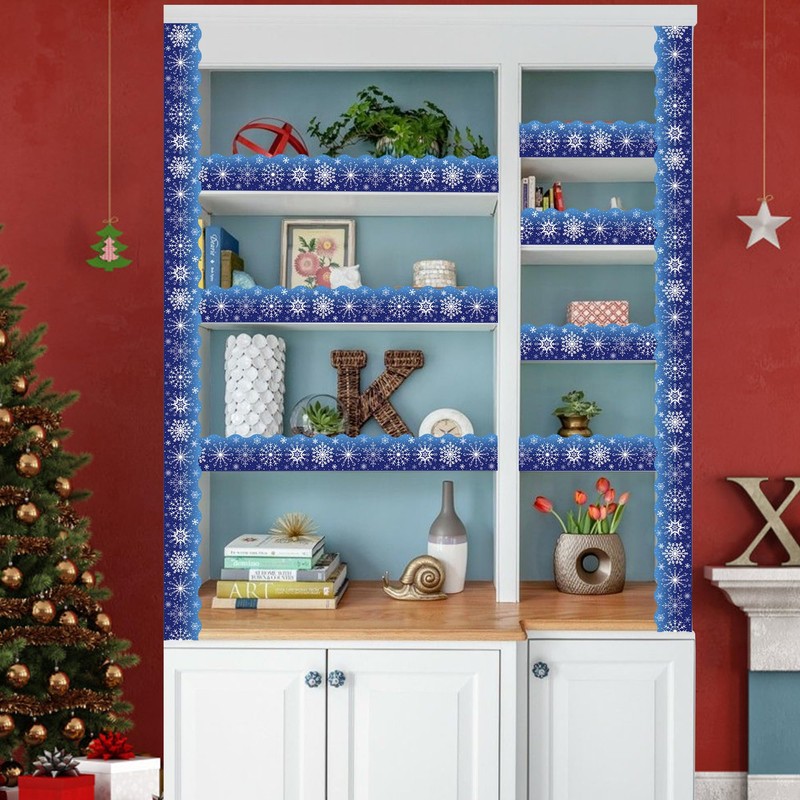 Snowflakes bulletin board trim is made of high quality paper and printed with clear patterns, self-adhesive, easy to peel and adhere to the surface of most objects.