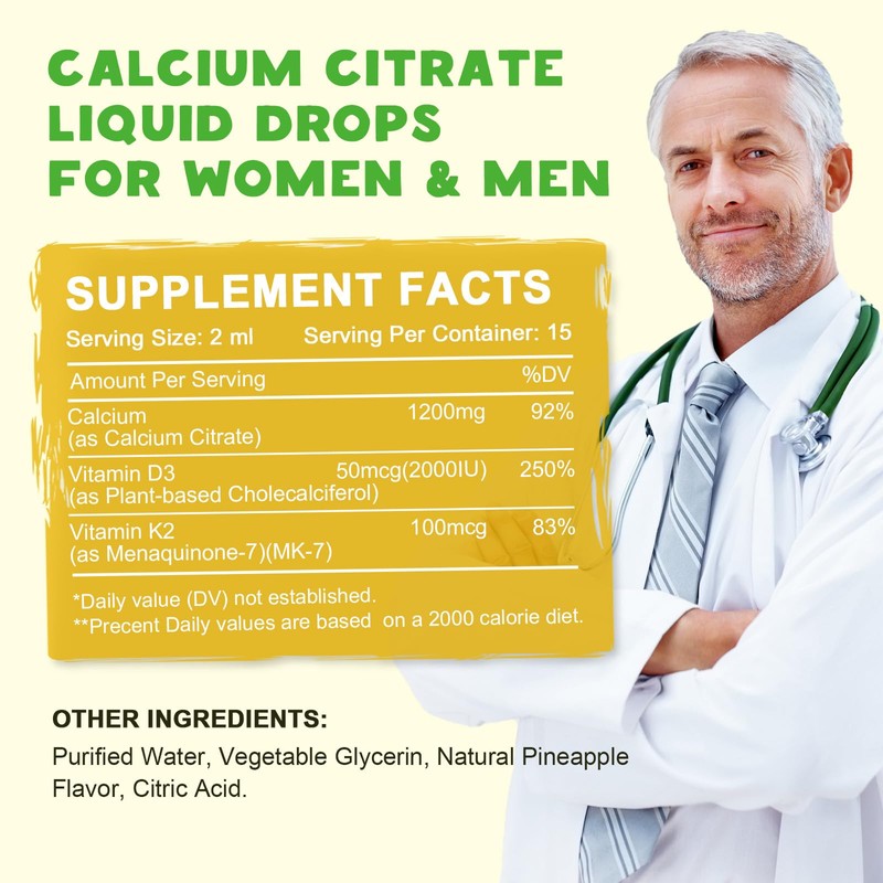 - Liquid Calcium Citrate and Vitamin D3 & K2: Compared with capsules and powders that are hard to swallow, delicious liquid calcium citrate is a godsend. A large amount of data proves that the absorption rate of liquid is much higher than that of capsules and powders. The fast absorption speed is not easy to irritate the stomach and intestines. It is very friendly to people who don't like taking capsules and calcium tablets and people with relatively sensitive stomachs