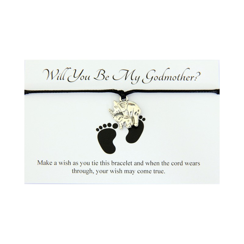 Lucor Godmother Gifts Card | Godmother Proposal Gifts | Elephant Wish Bracelet | Will You Be My Godmother Gifts | Gifts for Godmother(Black)