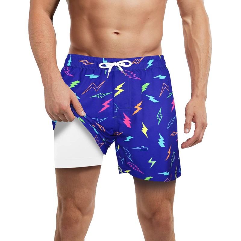 LUCOWEE Lightning Swim Trunks with Compression Lined for Men no Chafe Boxer Brief Lined Swimming Trunks Quick Dry UPF 50+ Stretchy 5.5 inch Inseam Bathing Suit Shorts Large