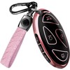 Lucrum Compatible with Hyundai IONIQ 6 Key Fob Cover & Leather Keychain, 7 Buttons TPU Keyfob Case for Santa Fe, Grandeur, KONA, Elantra (2022-2025) - Pink and Black