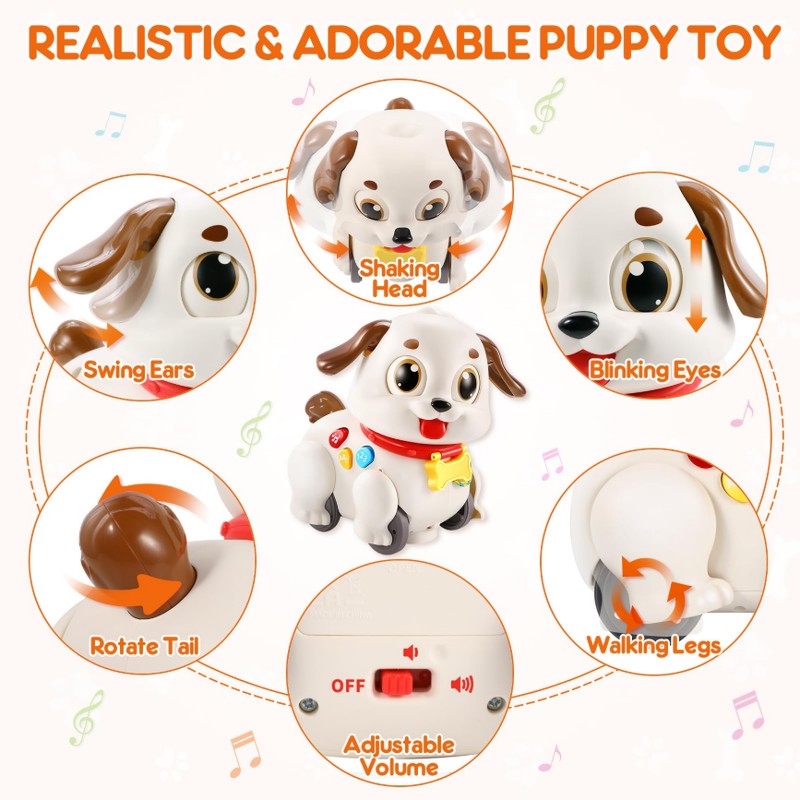 VERSATILE MODES TO EXPLORE: Adorable baby musical toys for 1 2 3 year old boy girl, GO Mode puppy toys for ages 0-2 will move on it's own, realistic shaking head, blinking eyes, swing ears and walking legs, engaging baby tummy time crawling toys. Switch 1 2 3 year old boy girl toys to STOP Mode, happily sit to play or walk with interactive push pull toys for toddlers 1-3