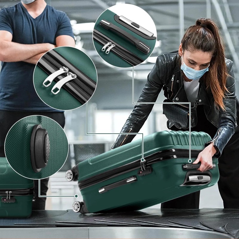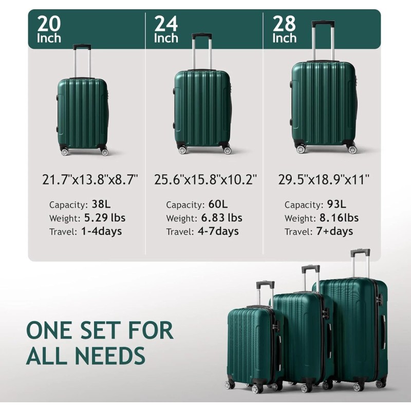 Luggage Set of 3 Hardside Carry on Suitcase Spinner Wheels&TSA lock,Portable ABS