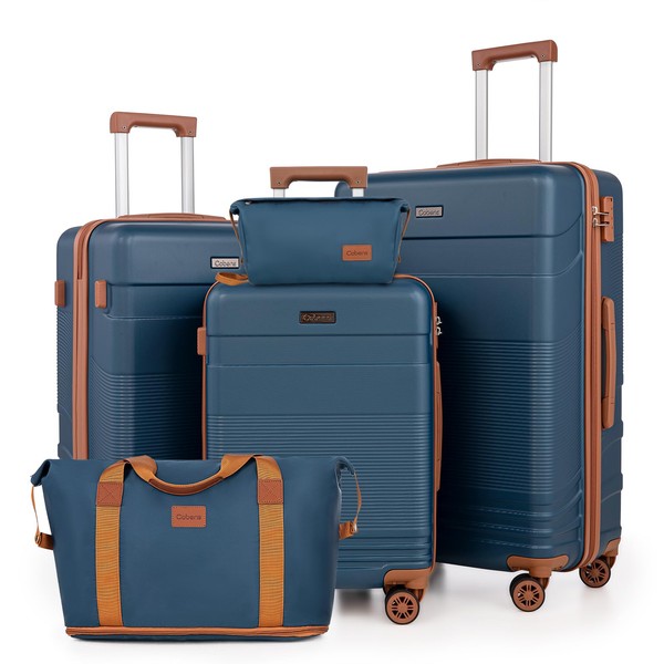 Luggage Sets 5 Piece with Spinner Wheels, Lightweight Hardshell Suitcases Set with Lock for Men and Women, Carry on Luggage Travel Set with Durable ABS Hard Case