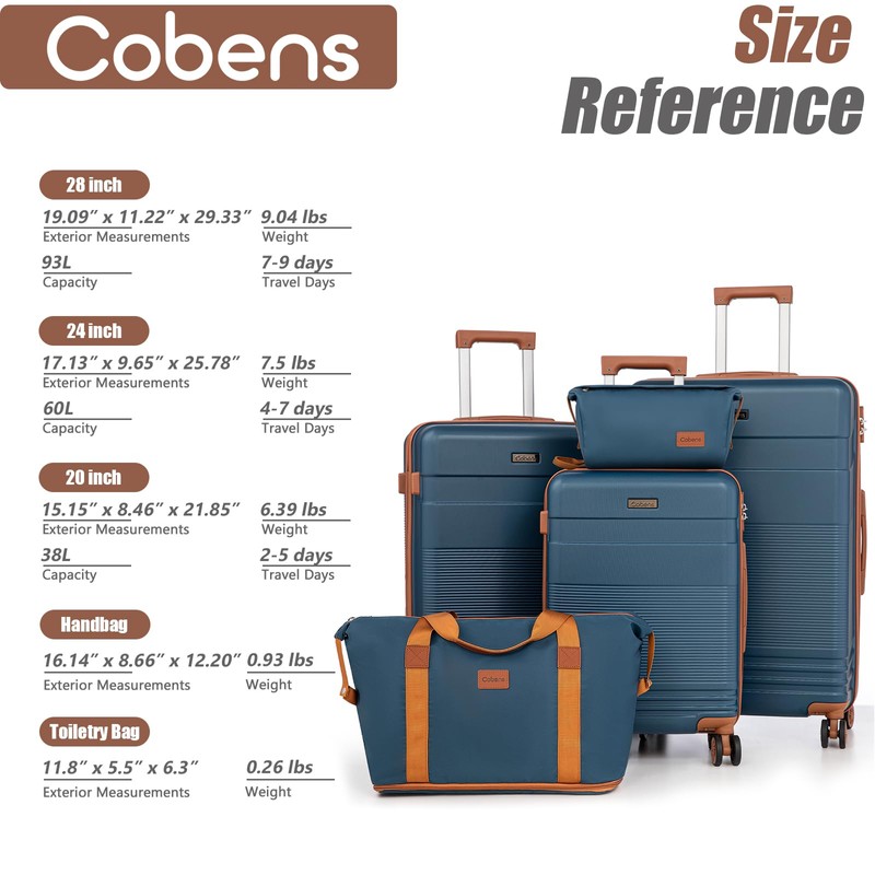 - 【5-Piece Luggage Sets】: This luggage sets includes three sizes (20, 24, and 28 inches), And extended duffel bag, and a toiletry bag,suitable for various travel needs. Each suitcase is equipped with 360-degree spinner wheels, providing smooth mobility and easy handling in airports and on the go.