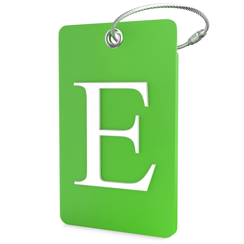 Luggage Tag Initial – Fully Bendable Tag w/ Stainless Steel Loop (Letter E)