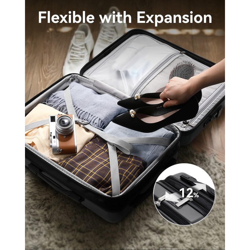 LUGGEX Carry On Luggage 22x14x9 Airline Approved, Expandable Polycarbonate Suitcase with Front Pocket and USB Port (Pink, 20 Inch, 36.1L)