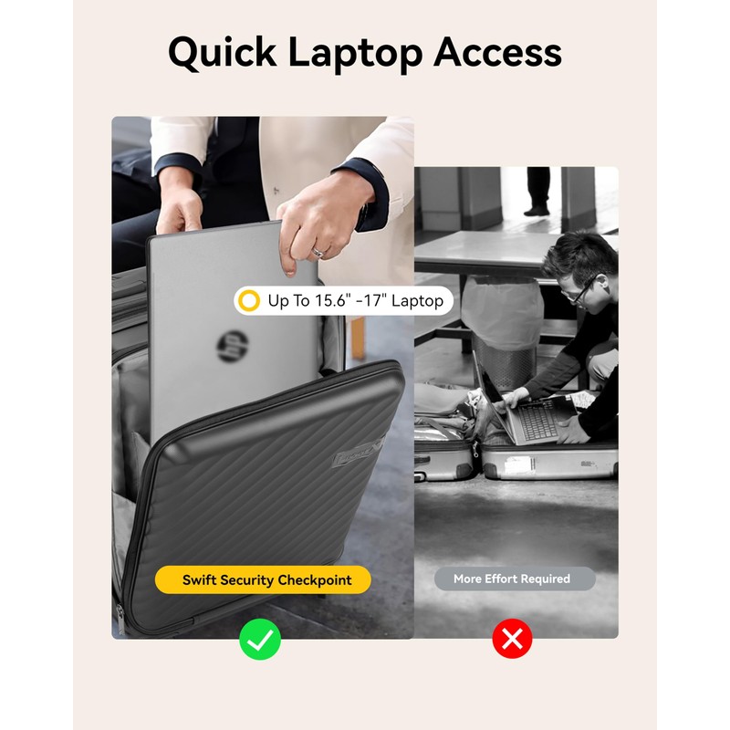 - Easy Access: The expandable carry on luggage with laptop compartment provides quick and easy access to your essentials. The spacious front pocket can accommodate laptops up to 15.6 inches, ensuring hassle-free travel.