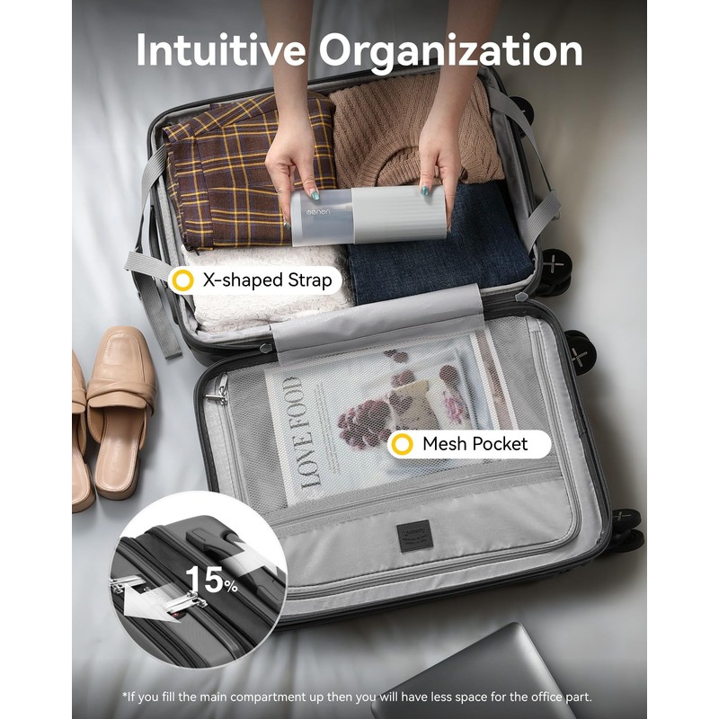 - Expandable Capacity: With an additional 15% packing capacity, our carry on luggage gives you the freedom to pack more without compromising on space.