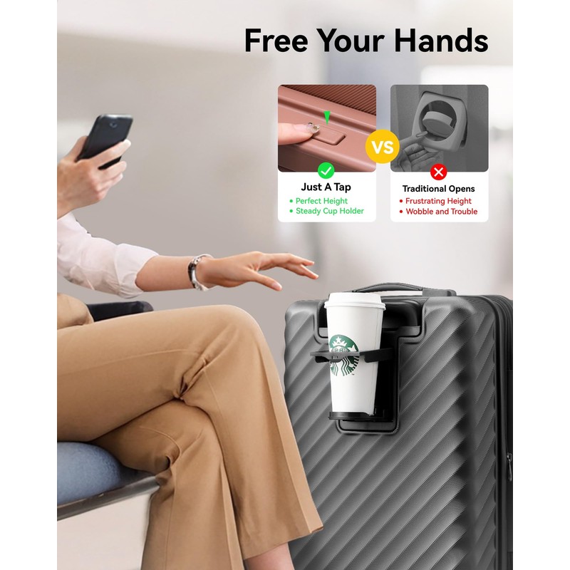 - Stay Hydrated: Stay refreshed with our carry on luggage's integrated water bottle holder and cup holder. The hard case luggage is designed to help you stay hydrated throughout your journey.