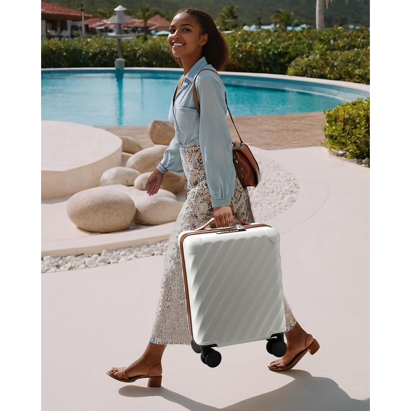 - Glide with 360° Ease: The small suitcase carry on features 8 silent spinner wheels that rotate smoothly in every direction, allowing you to maneuver through busy airports, cobblestone streets, or hotel lobbies, fluid movement wherever you go.