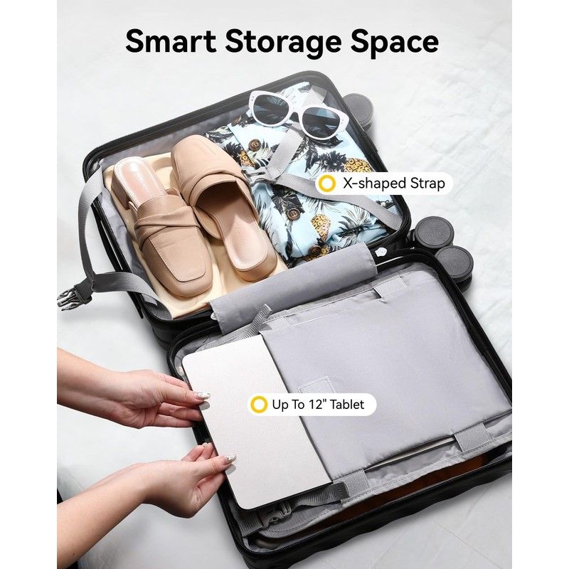 - Organized Interior Storage: The interior of the lightweight mini suitcase features an adjustable compartment and X-shaped straps, keeping your clothes neatly in place during transit. The dedicated space for a 12-inch tablet ensures that your device stays protected and accessible.