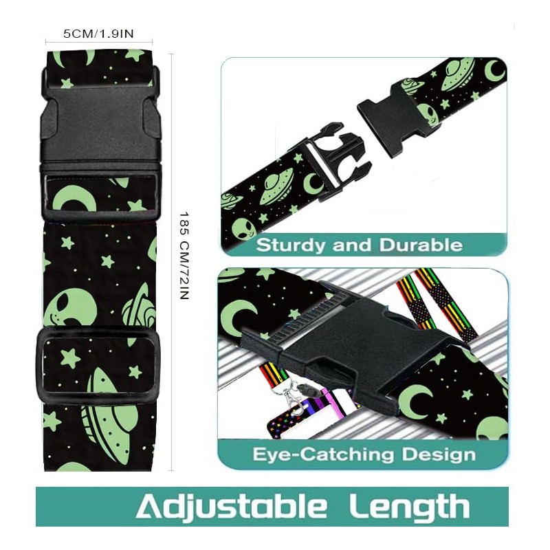 Luggitime Luggage Straps for Suitcases Travel Belt Accessories, Cute Suitcase Strap, Adjustable Luggage Belt Strap, Heavy Duty with Quick-Release Buckle Luggage Strap Cute Green Aliens
