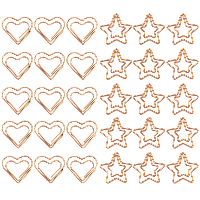 Luggspa 120 Pcs Rose Gold Heart and Star Shaped Paper Clips Set, 60 Pcs Heart Paper Clips and 60 Pcs Star Paper Clips in, and for Office and Home