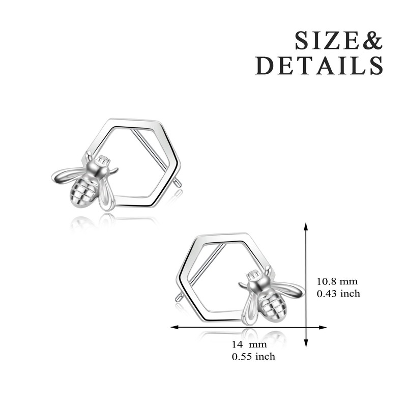 LUHE Honeycomb and Honey Bee Earrings Hypoallergenic Cute Sterling Silver Stud Earrings for Women