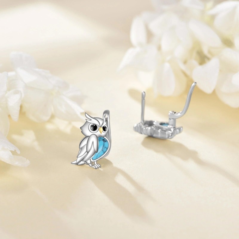 LUHE Owl Earrings Sterling Silver Cute Animal Owl Leverback Earrings with Turquoise Hypoallergenic Jewelry Gift for Women, Small, Sterling Silver, Turquoise
