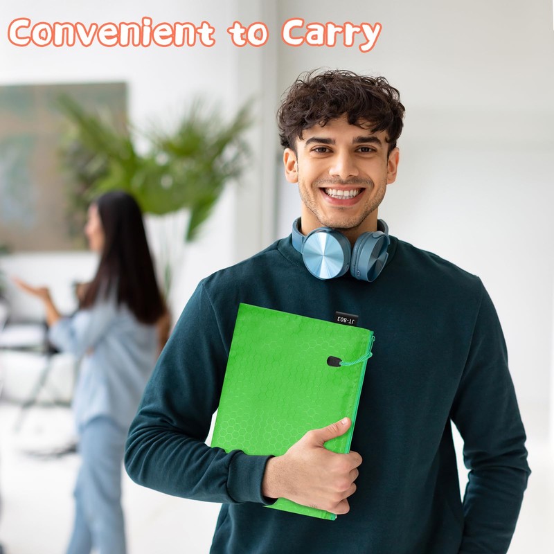 LUHIUMOYA A4 Document Wallet, Waterproof Document Bag with Zip, Bag for Paper, Documents, File, Cosmetics, Homework (Green)