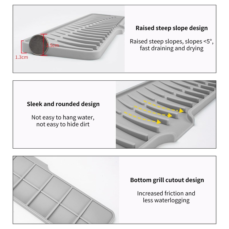 - Slope design: our drip mat narrow has a unique slanted design, which effectively directs the flow of water and prevents splashes, fits well and is easy to clean and maintain