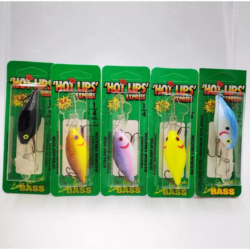 New old stock Pre Rapala Luhr Jensen 1/4 oz Hot Lips Express crankbait. Length: 2 1/8". #6 VMC hooks. T.A. Tournament Advantage Casting model 12 - 16 feet. A small profile lure that achieves extreme diving depths. Tough colors to find. Made in USA (1995 - 2003). $4.25 shipping and each additional Hot Lips Express is .50 each shipping.
