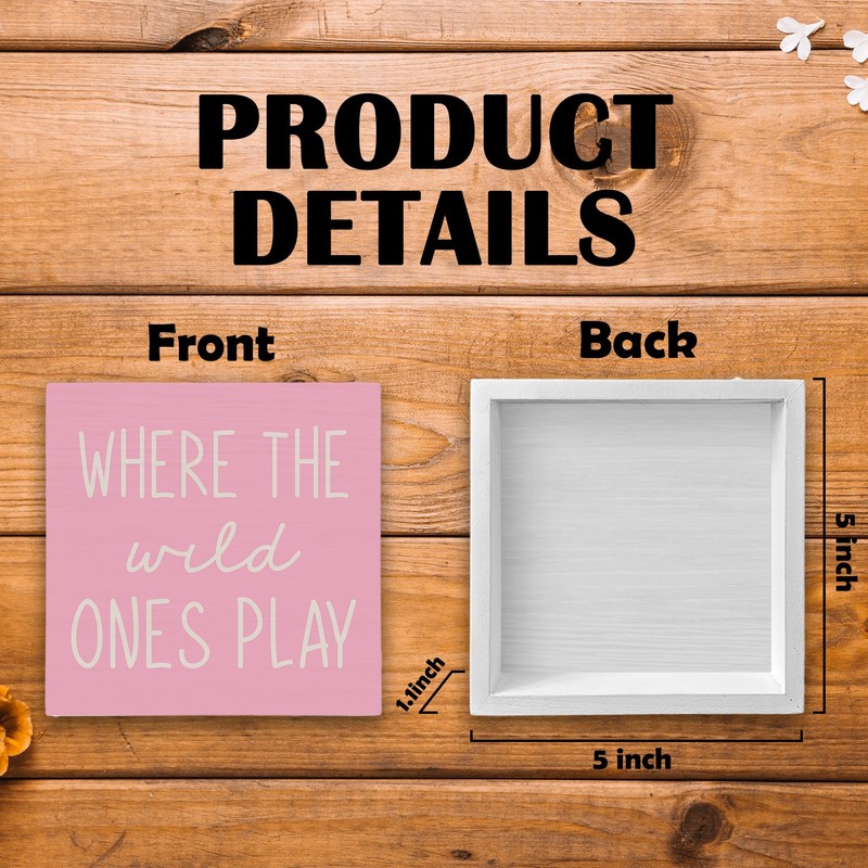 Luipk Where The Wild Ones Play Pink Wood Box Sign Desk Decor 5X5, Nursery Kids Room Wooden Block Sign Decorations for Playroom Toddler Boys Girls Room Wall Tabletop Shelf Decor