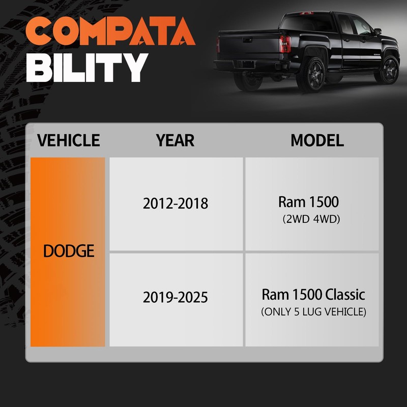 - 【COMPATIBLE MODELS】Compatible with 2012-2018 Ram 1500 4WD (NOT FIT STUDS WITH 9/16"-18), 2019-2024 Ram 1500 Classic. Please check your vehicle year/make/model using the part finder in the upper left corner before purchasing. May fit other vehicles, please refer to adapter specs to confirmm