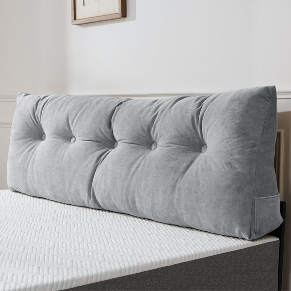 Lukace Premium Wedge Pillow Headboard with Removable Cover - Triangular Reading Support Backrest for Bed with Side Pockets, Perfect for Reading & TV (Light Gray Full Size, 54x8x20 Inches)
