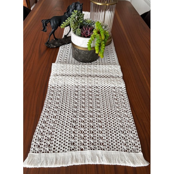 - Perfect Length: You can give your tables a rustic and boho look with our tasseled macrame table runner. (Because it is folded in the bag, there will be wrinkles on the table rail when you take it out, which will affect your measurement. So please make sure the table rail is placed neatly and level before measuring.)