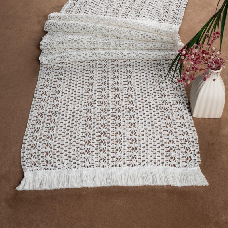 LUKCHE Boho Table Runner, Macrame with Tassels, Butterfly Pattern-Cream, 14x60 inches, Cotton