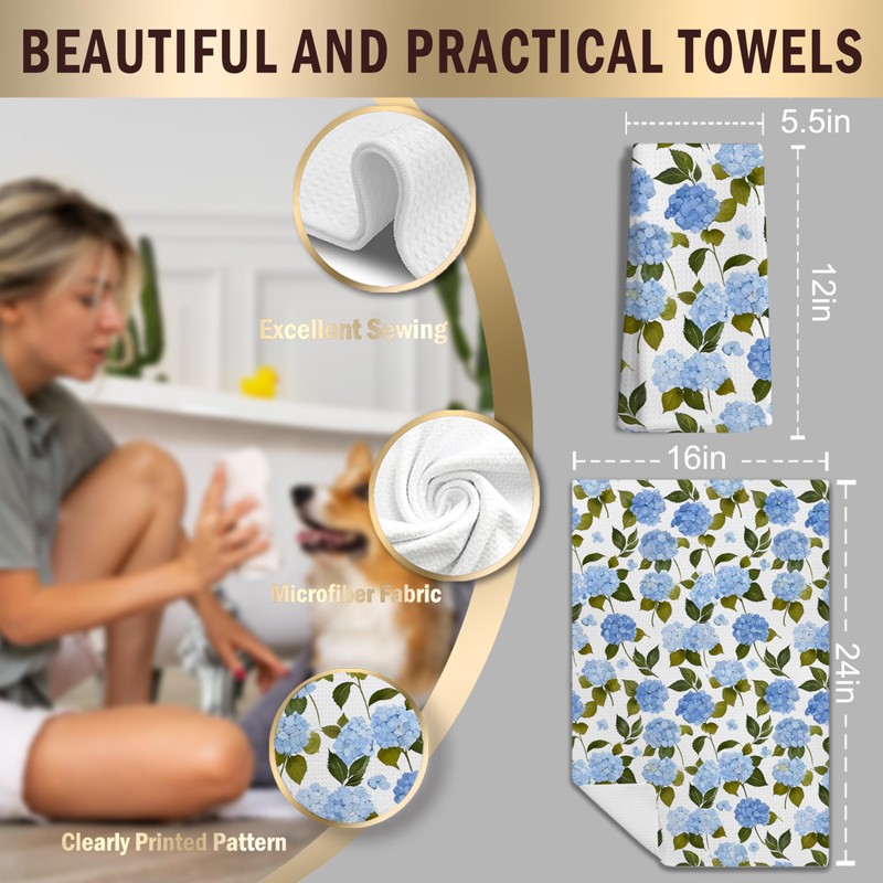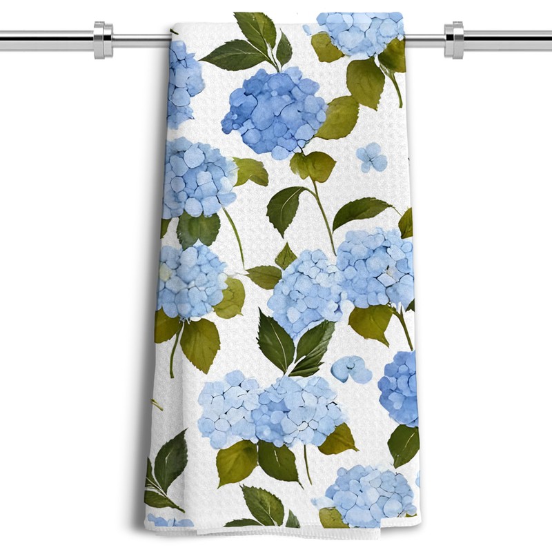 LUKIPOM Blue Hydrangea Flower Floral Kitchen Towels Set of 2,Blue Hydrangea Floral Kitchen Bathroom Decor Gifts,16x24 Inch