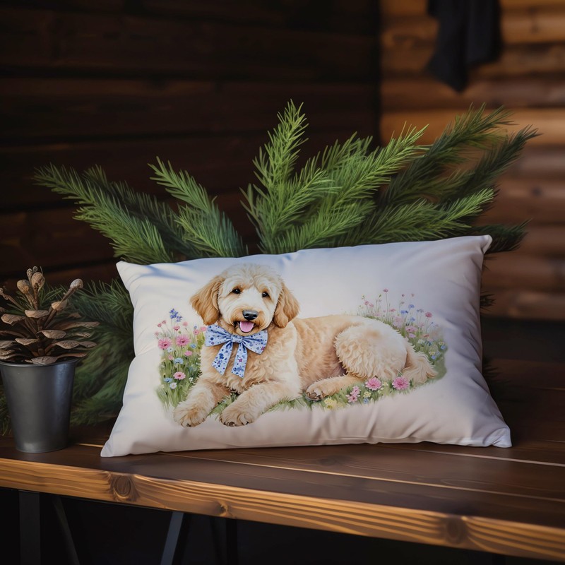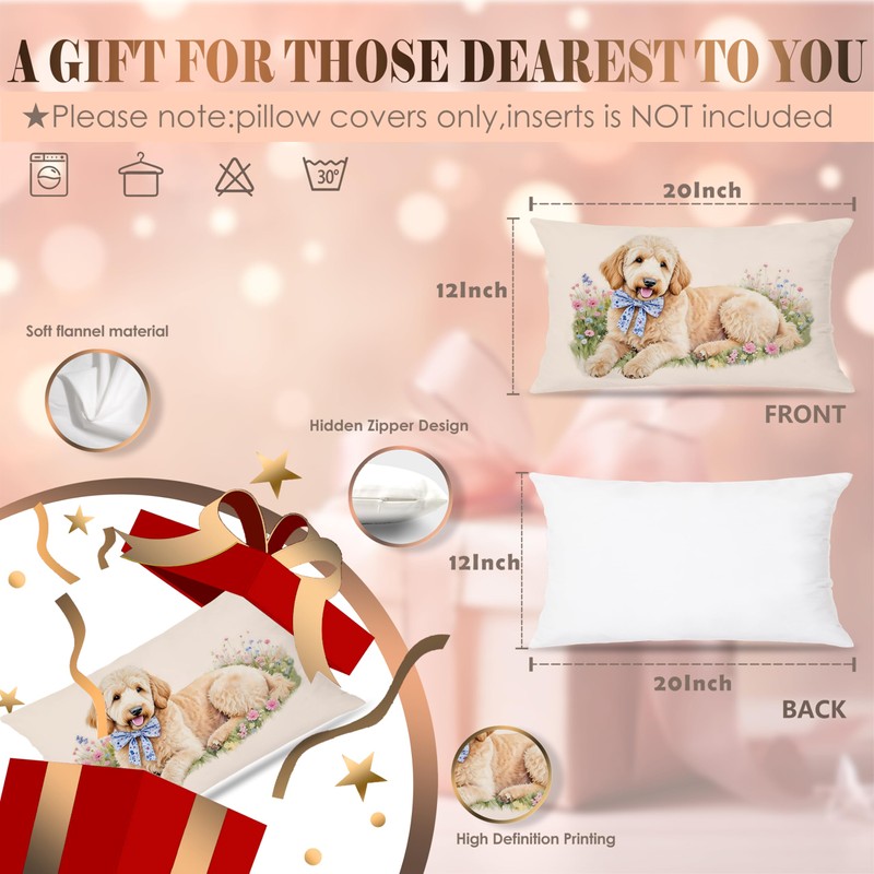 LUKIPOM Cute Labradoodle Dog Pillow Covers 12x20, Goldendoodle Decor, Golden Doodle Gifts Women, Dog Mom Lover Gifts Decorative Lumbar Pillow Covers