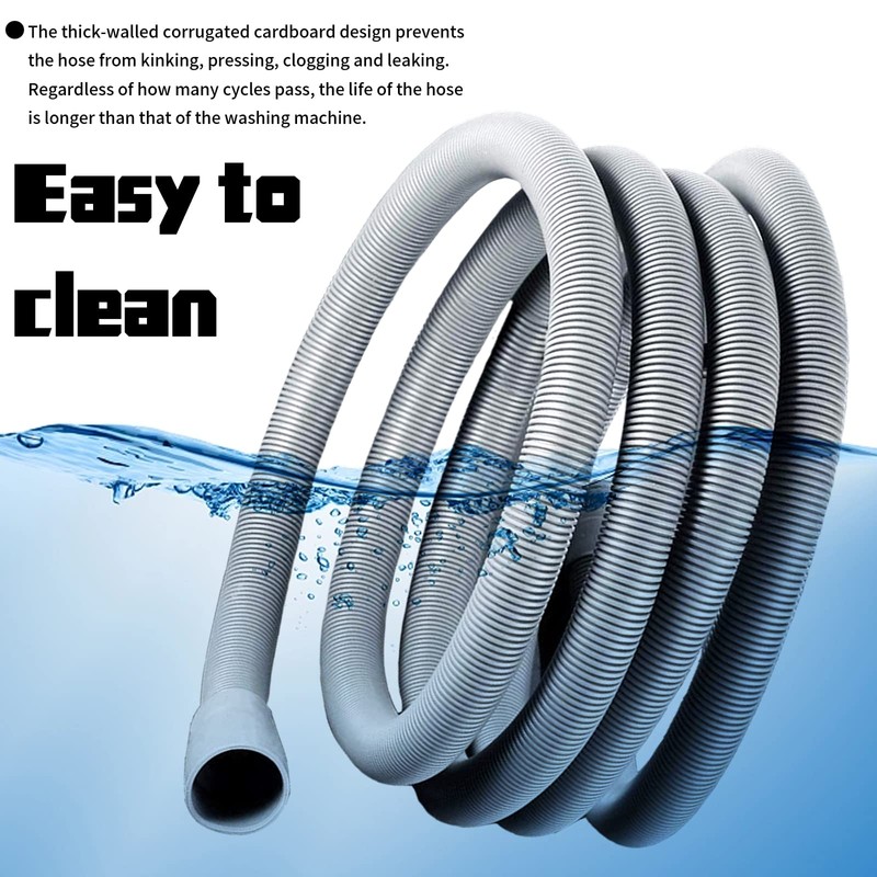LUKIUP 4M Universal Washing Machine Hose, 1/1.5/2/2.5/3/4/5/6/7M Extension for Washing Machines, with Drain Hose Connector, Hook and Hose Clamp, for Washing Machine Dishwasher (4 m)