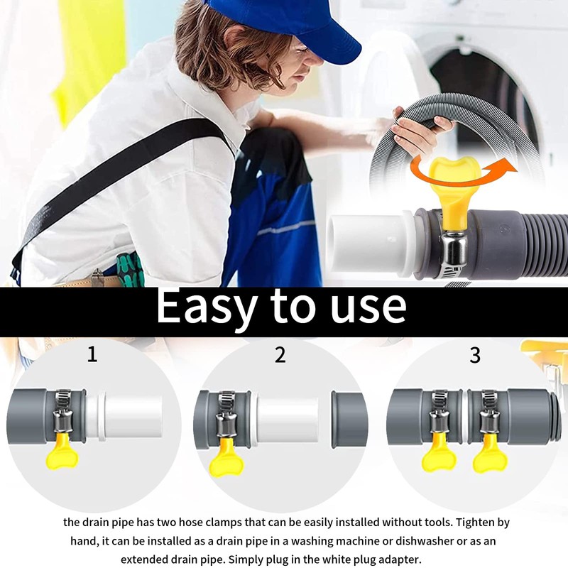 - Flexible extension: the drain pipe holder is hung on the clamp and can be moved to any position on the hose to achieve a perfect fit. Extension drain hose from too short inlet hoses, bridges longer distances, for more installation options of the washing machine and dishwasher.