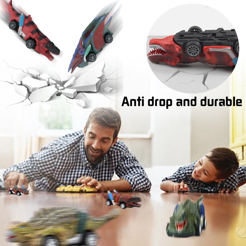 - Safe Material The dinosaur cars for kids 6 years old are made of PVC, pressure and drop resistant and non toxic and environmentally friendly and very safe for kids.