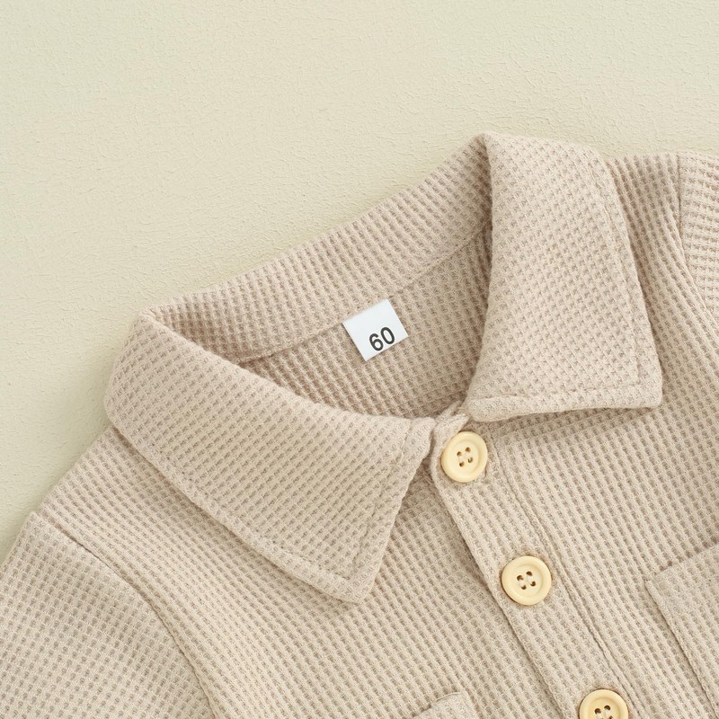 - Design:Newborn baby boy summer outfit, infant boy summer clothes, baby boy shirt romper bodysuit, baby boy waffle shirt bodysuit, baby boy collared shirt romper, baby boy short sleeve collared bodysuit, baby boy waffle knit collared romper, waffle shirt jumpsuit baby boy, baby boy button down shirt romper, baby boy button up bodysuit, solid color, button closure, two front pockets, short sleeve, collared, one piece romper jumpsuit, cool and elegant, will make your baby more like a gentleman