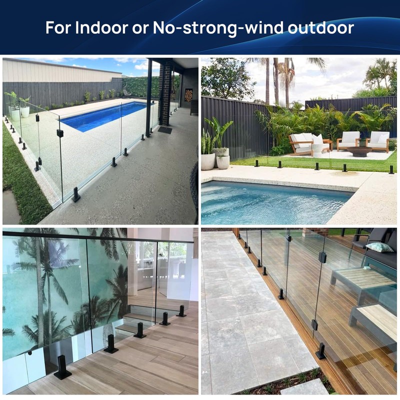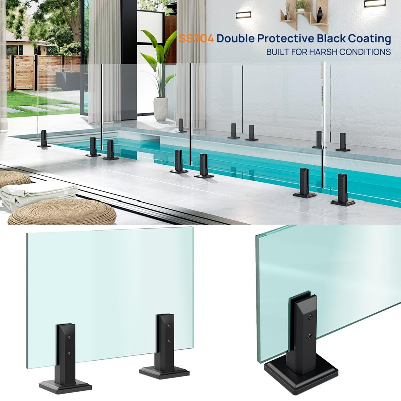 • Sleek Matte Black Finish: Features a stylish black powder-coated finish that blends seamlessly with contemporary decor while enhancing rust resistance. A stylish upgrade for any glass fence or railing project.
